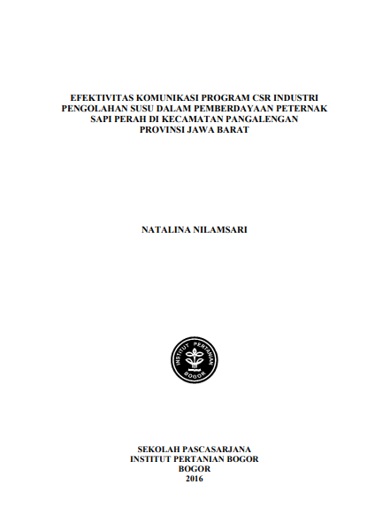 JUDUL 2016 | DISERTASI NATALINA NILAMSARI : EFEKTIVITAS KOMUNIKASI PROGRAM CSR INDUSTRI PENGOLAHAN SUSU DALAM PEMBERDAYAAN PETERNAK SAPI PERAH DI KECAMATAN PANGALENGAN PROVINSI JAWA BARA