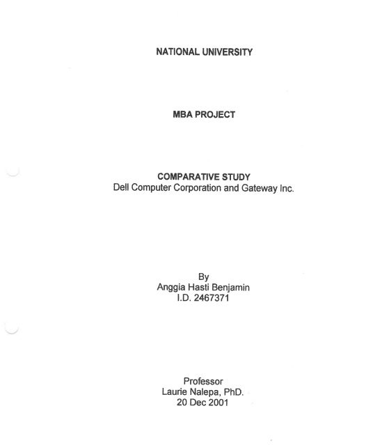 | JUDUL | 2001 | TESIS ANGGIA HASTI BENJAMIN : COMPARATIVE STUDY DELL COMPUTER CORPORATION AND GATEWAY INC. |