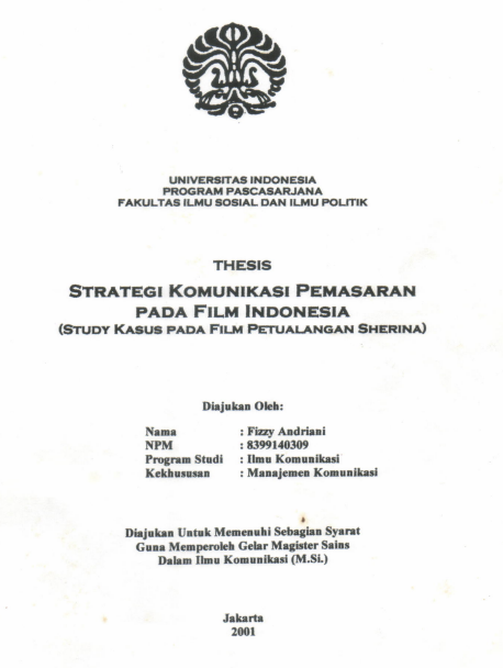 | JUDUL | 2001 | TESIS FIZZY ANDRIANI : STRA,TEGI KOMUNIKAST PSUNS^I,IrAN PADA Flt-lvl lxooxesll (3ruov Klsua pADA Frtlf PEruA,r-A,NGnx Sxenlxr) |